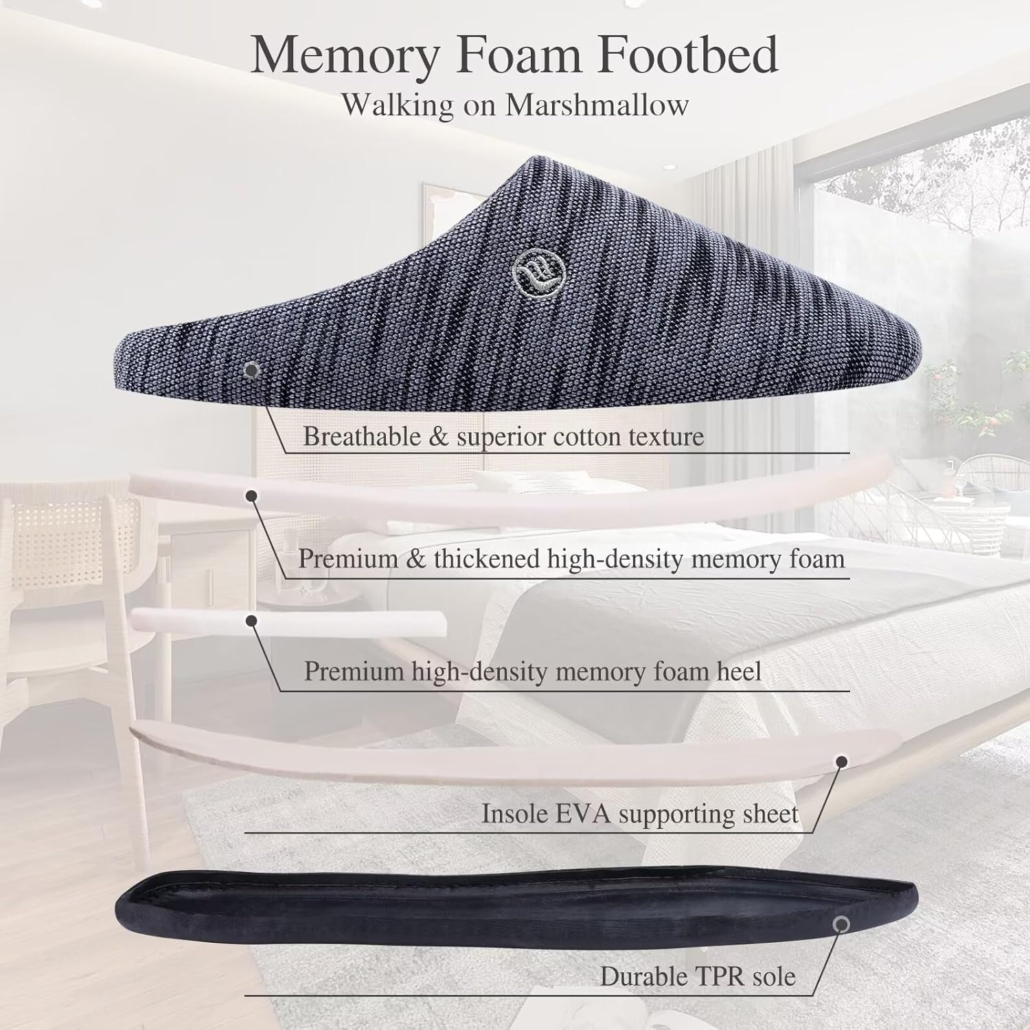 CIOR Unisex Men’s Women’s Memory Foam Slippers Comfort Cotton-blend Closed Toe House Shoes Indoor Scuff
