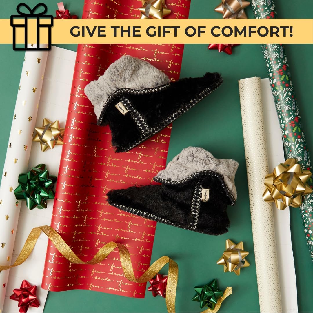 Dearfoams Women’s Fuzzy Memory Foam Beth Bedroom Bootie Slipper Sock with Grippers