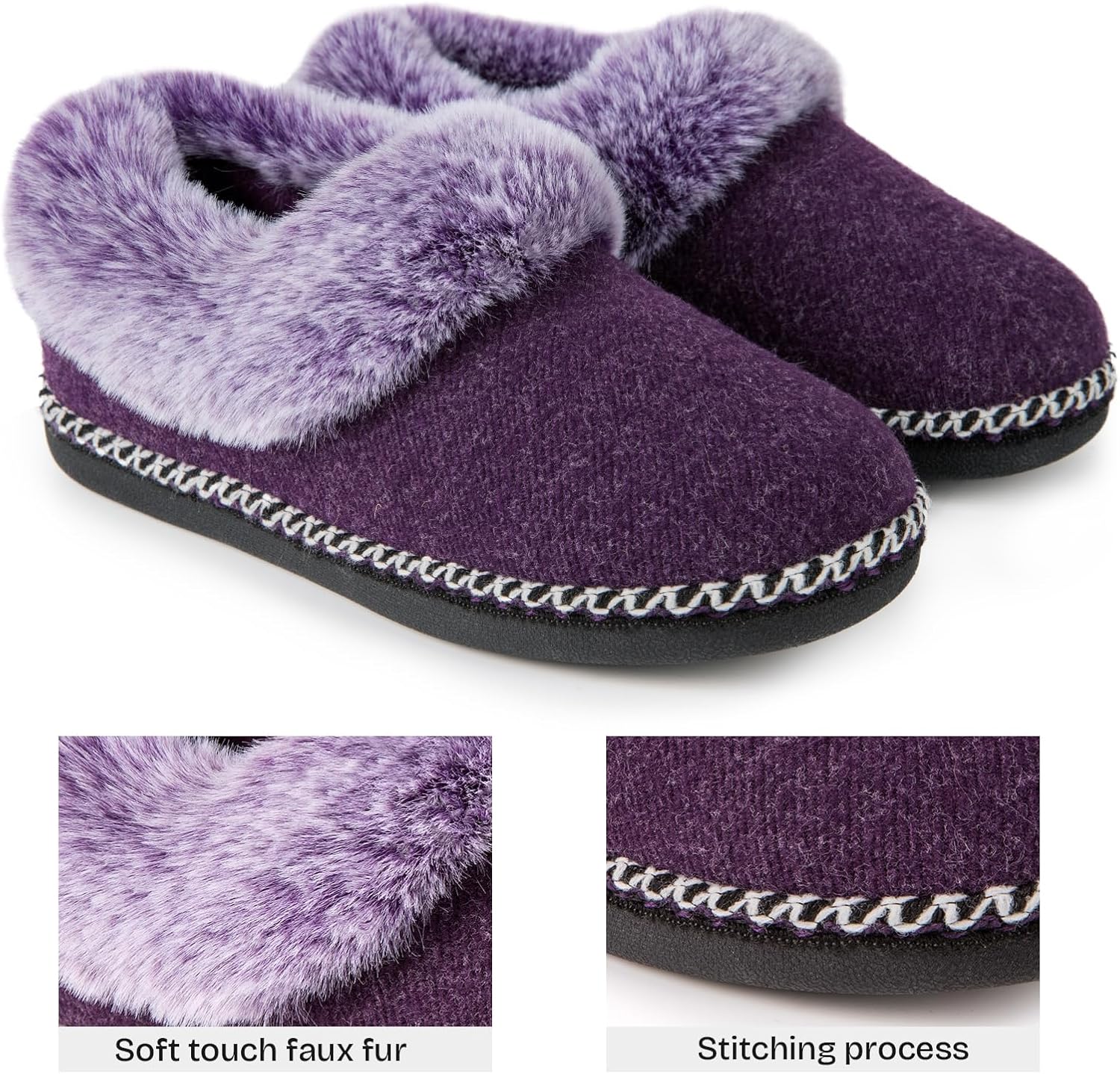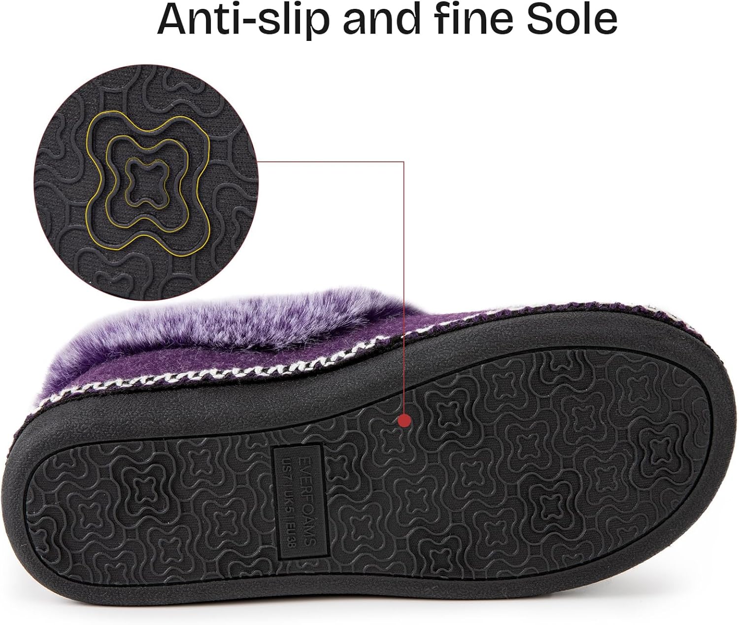 Customers find these slippers comfortable and warm with a memory foam insole and non-slip outsole. They are well-made with classic styling and a rich purple color. The slip resistance is appreciated, and the value for money is good. However, some customers have differing opinions on the fit and support.