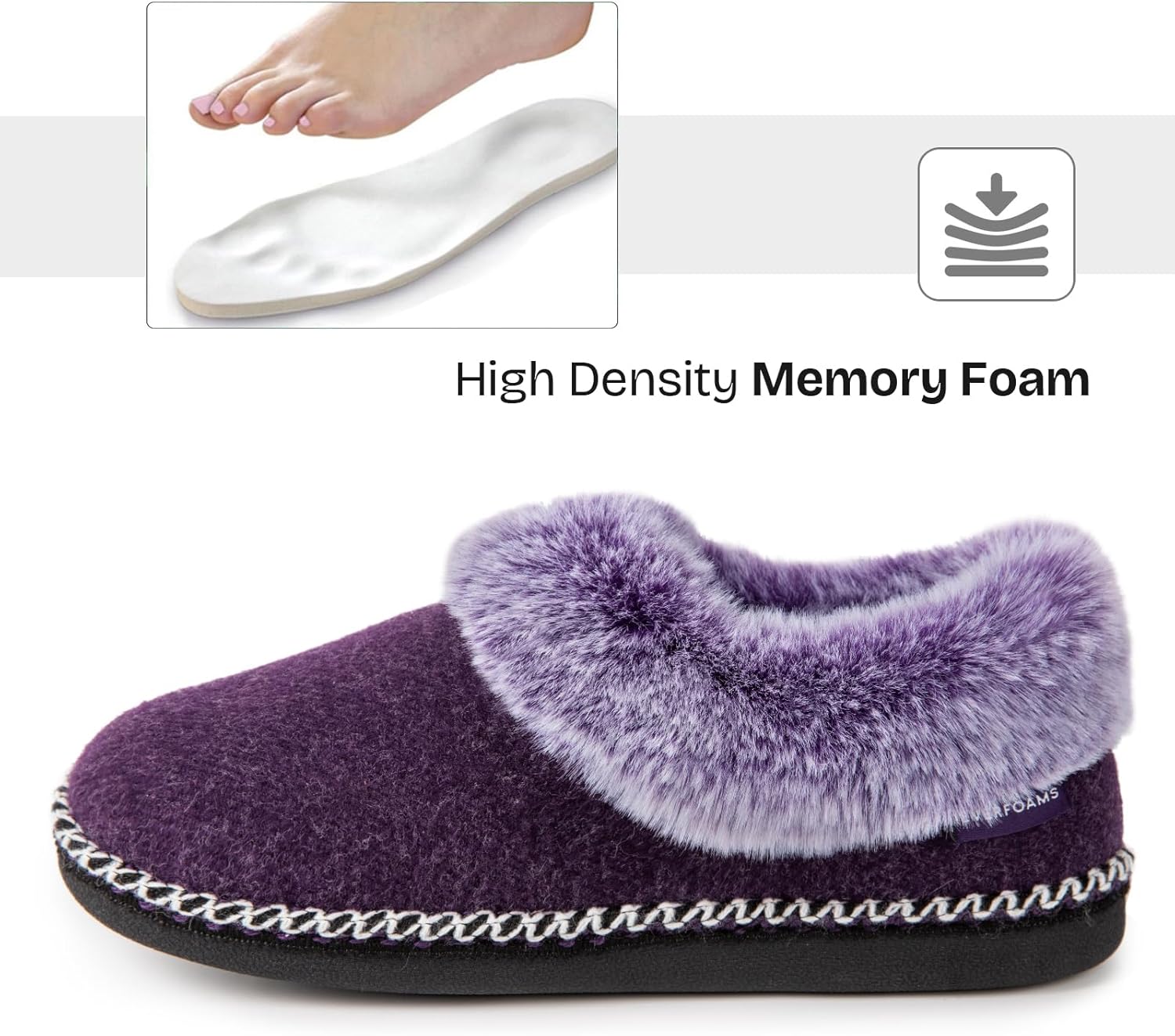 EverFoams Women’s Bootie Slippers Warm Soft Comfy Memory Foam Non-slip Indoor House Shoes with Fluffy Collar