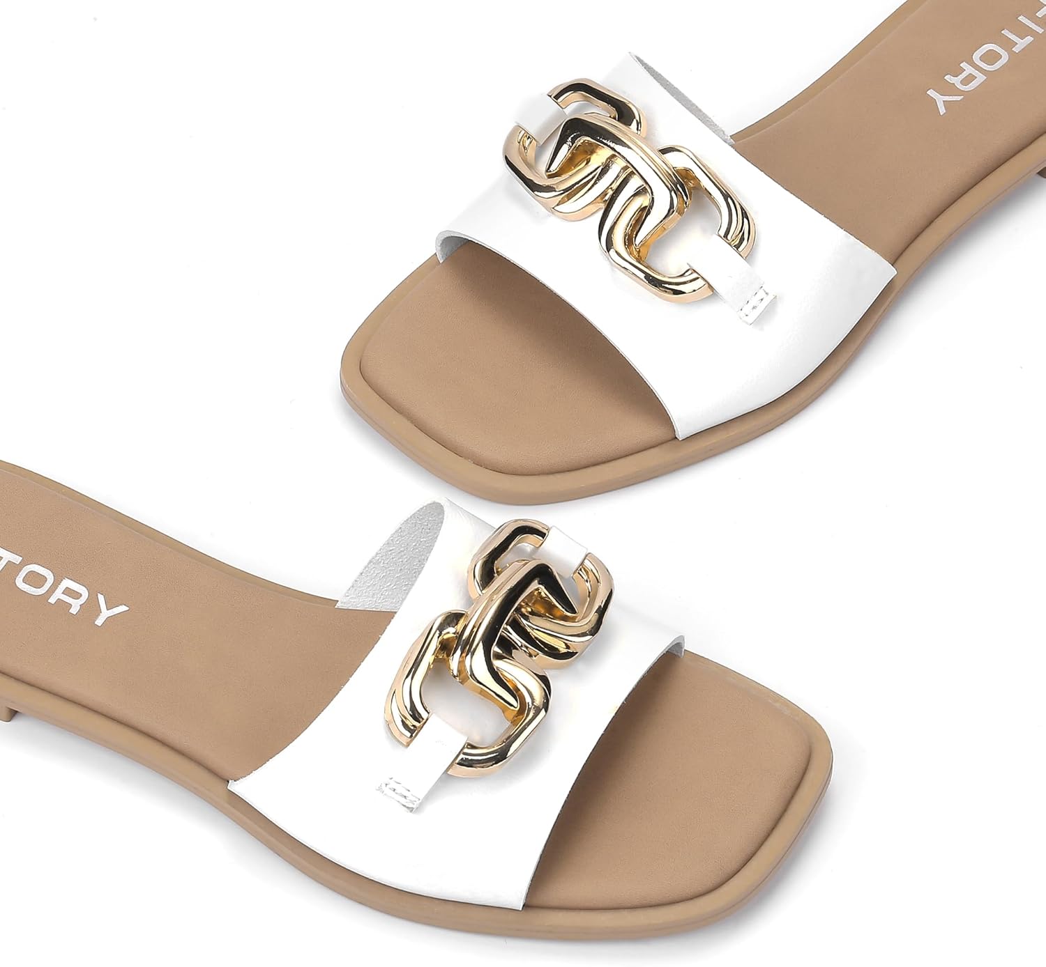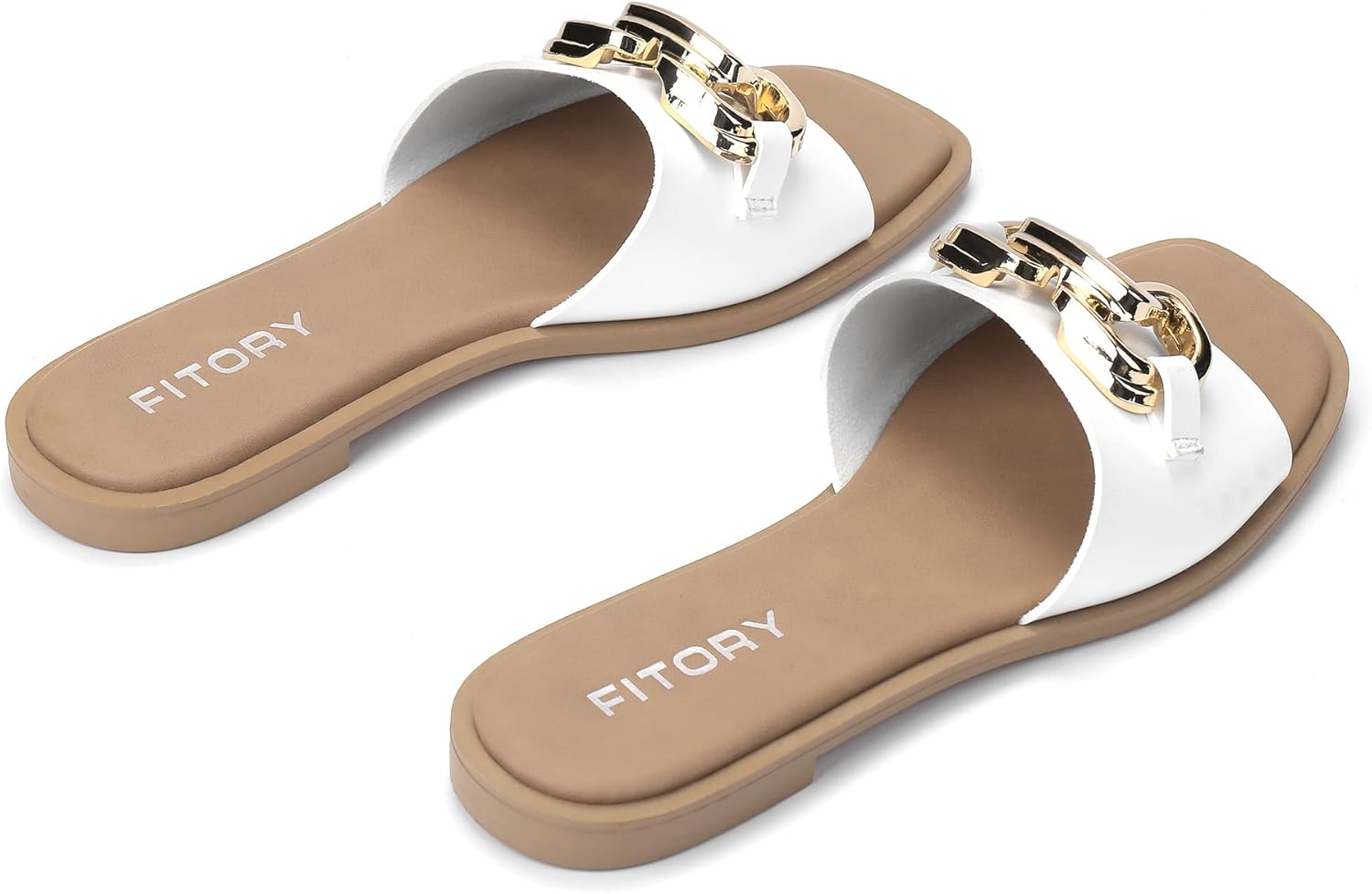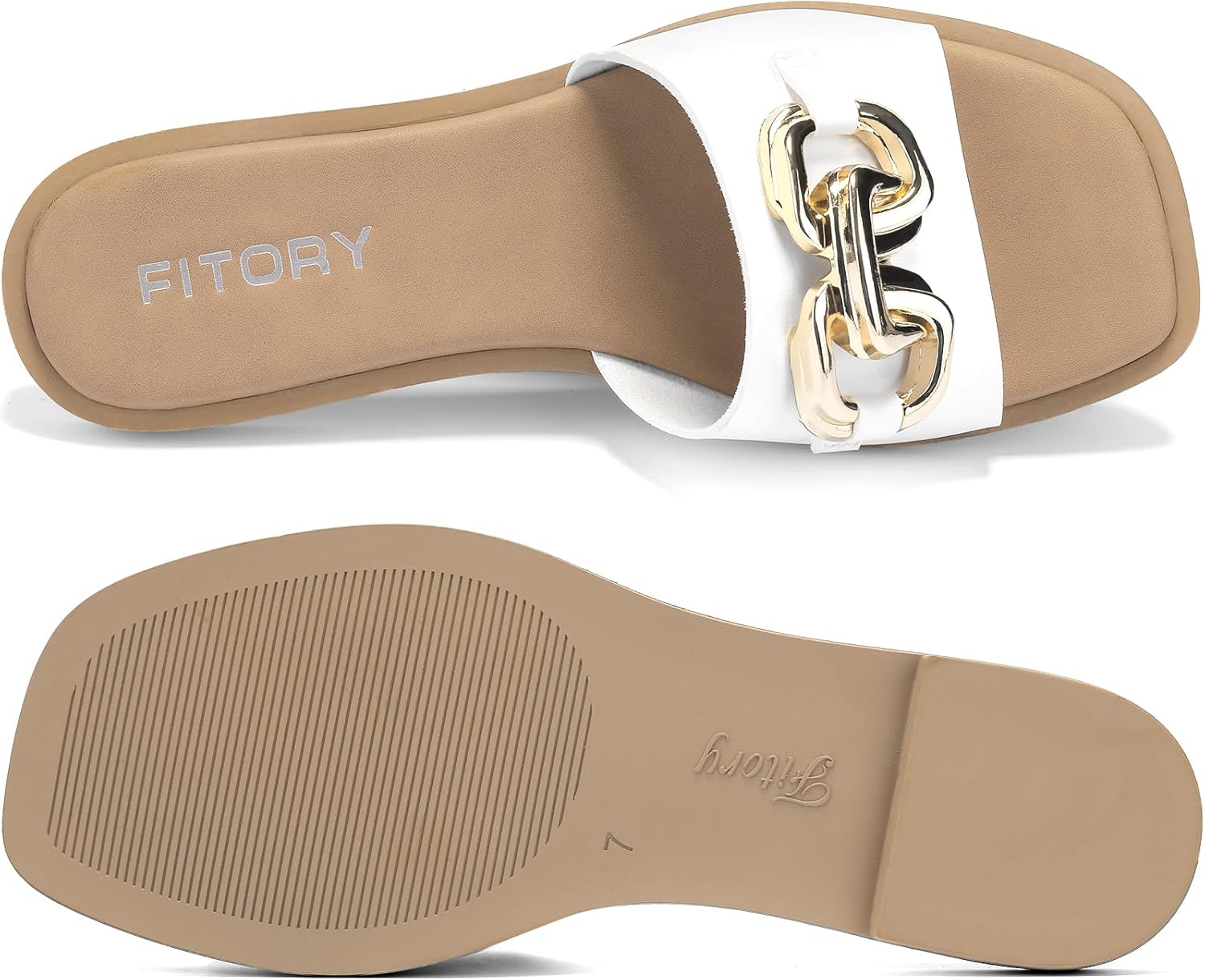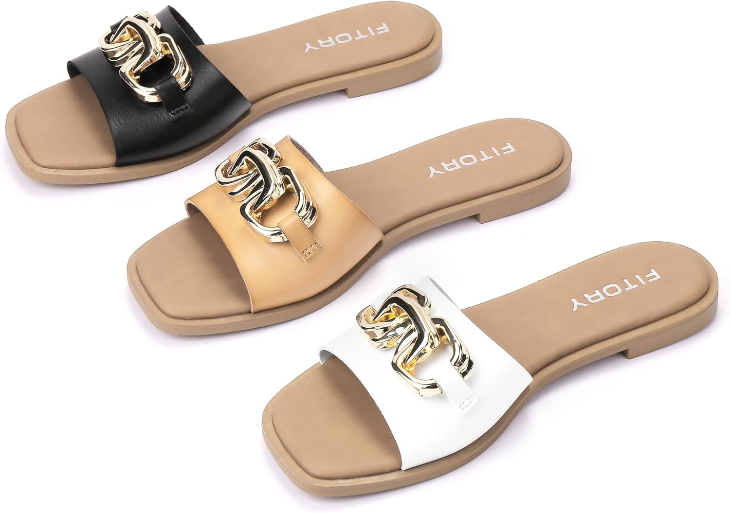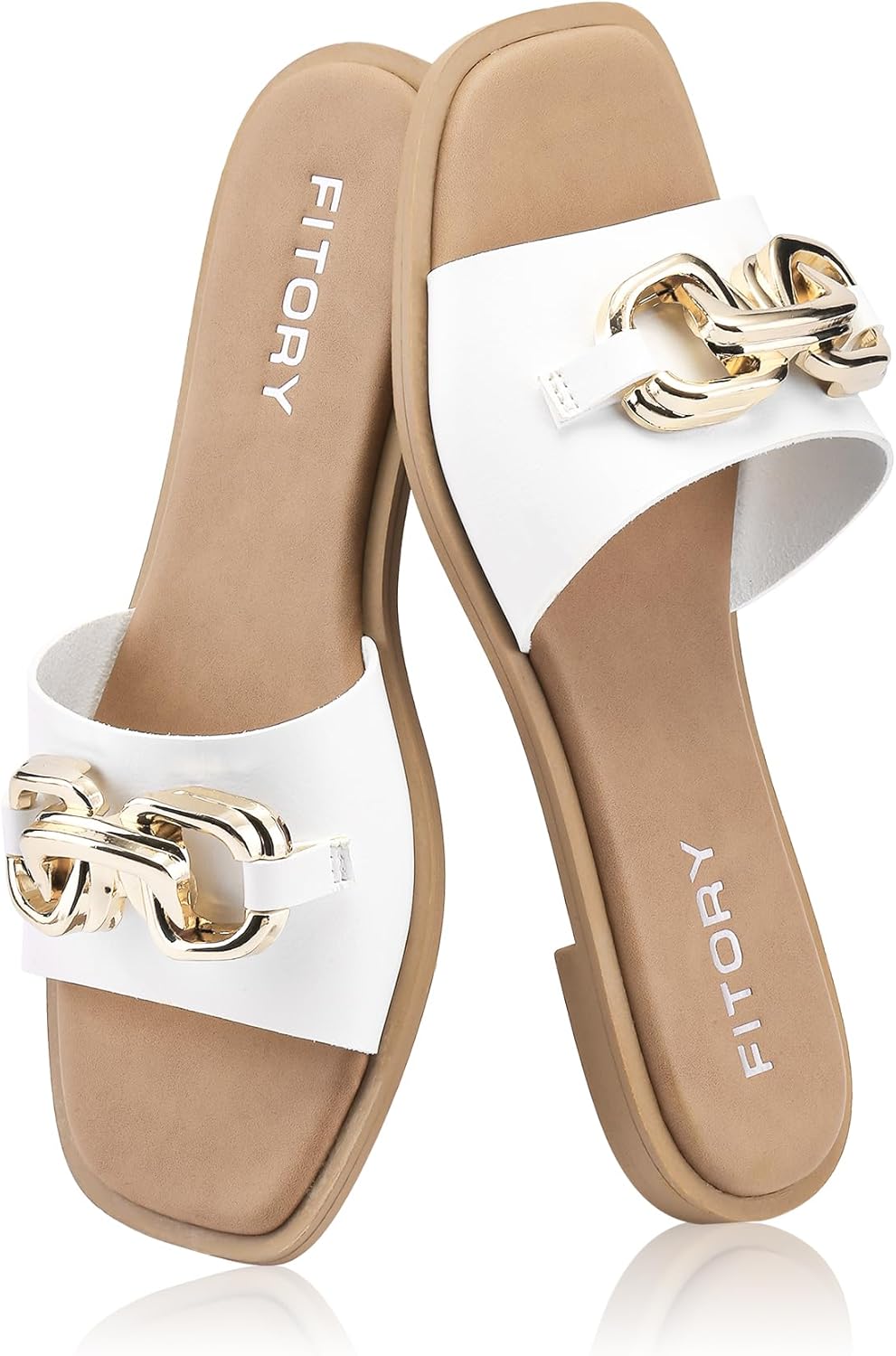 FITORY Women’s Flat Sandals Fashion Slides With Soft Leather Slippers for Summer Size 6-11