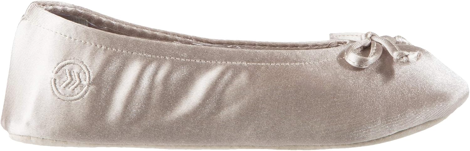 isotoner Women’s Satin Ballerina Slippers with Classic Ribbon Or Soft Tie Bow and Suede Sole