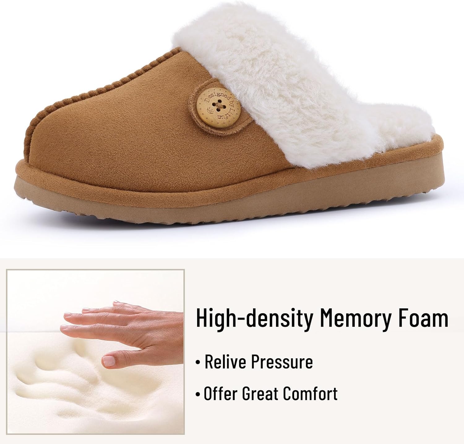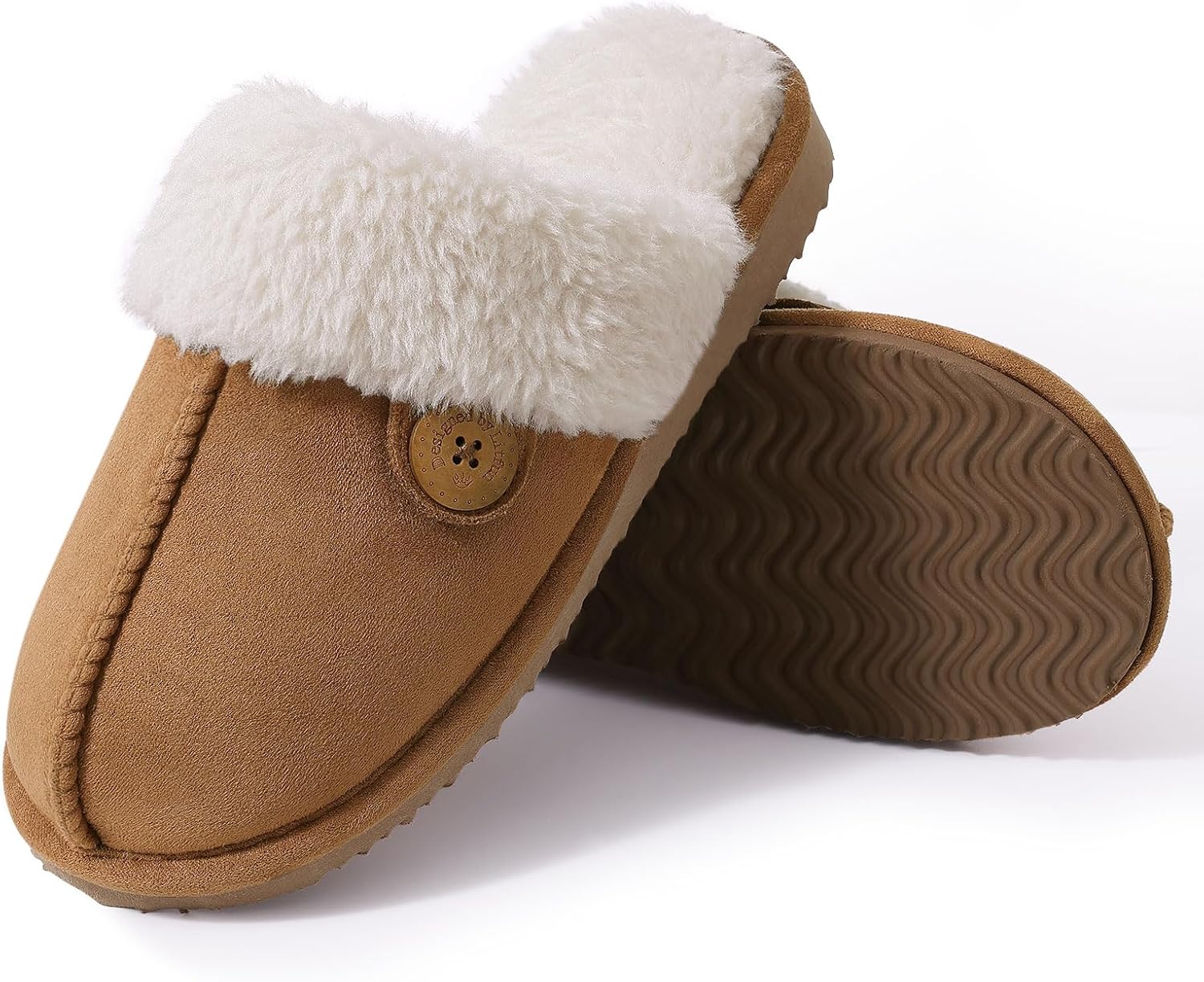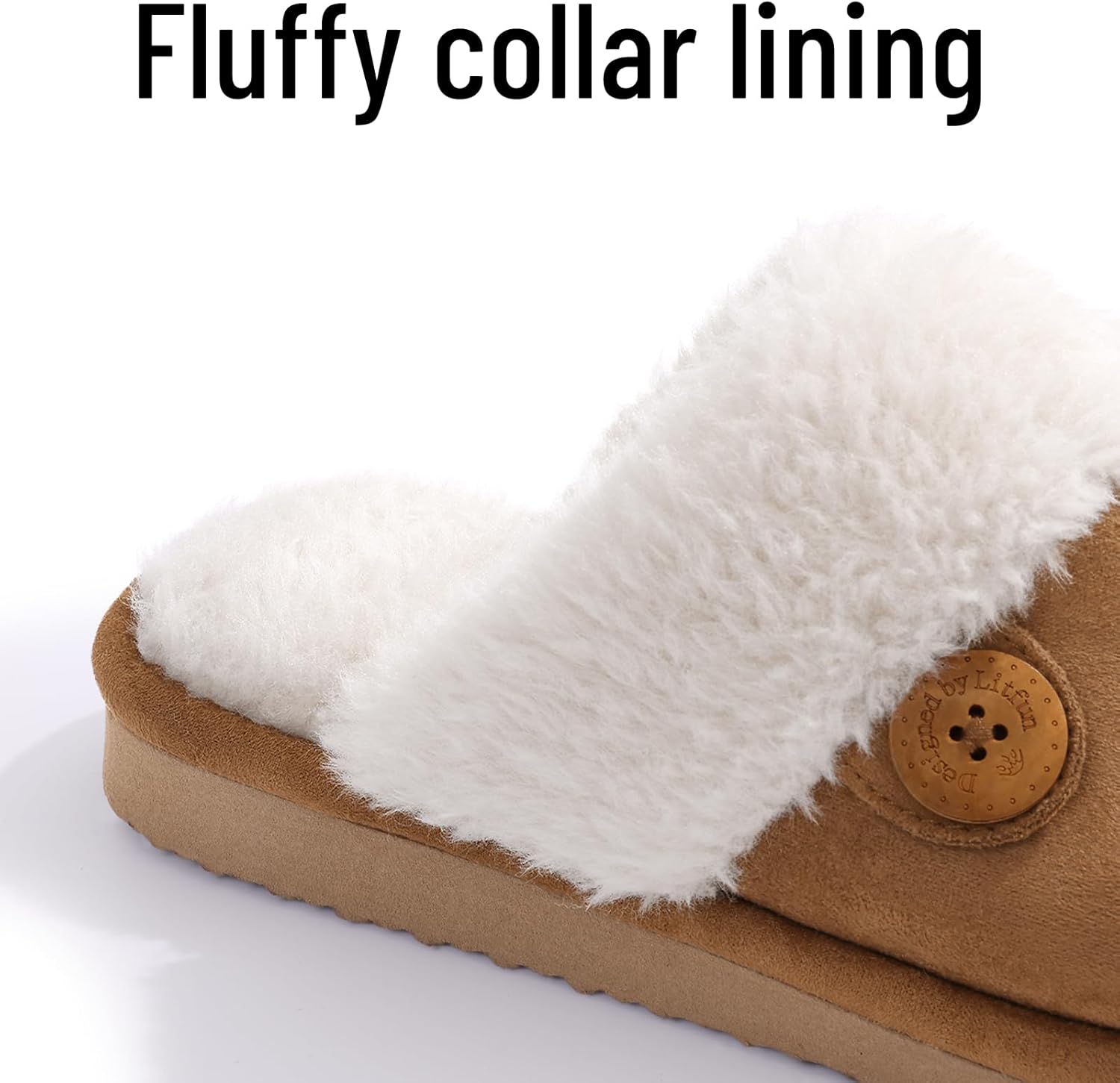 Litfun Fuzzy Slippers for Women with Memory Foam Winter Fluffy House Shoes Indoor Outdoor
