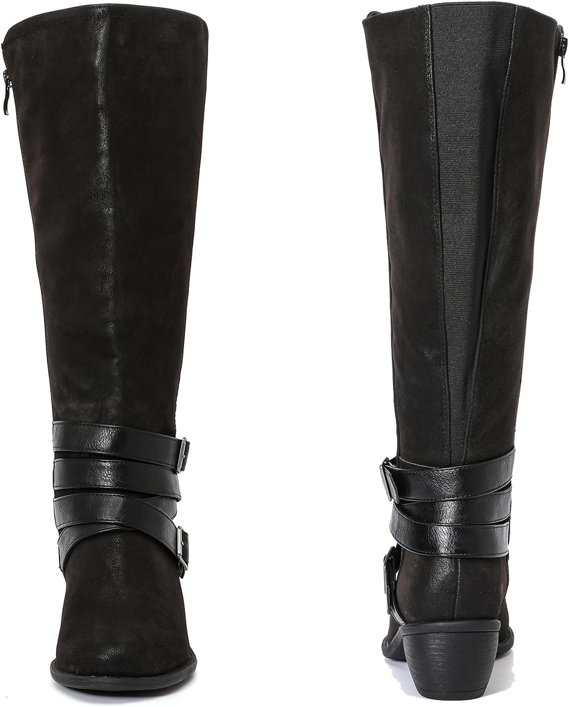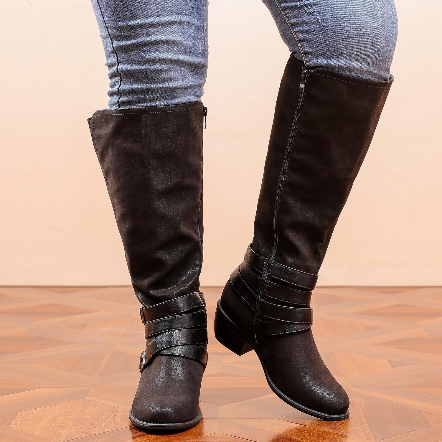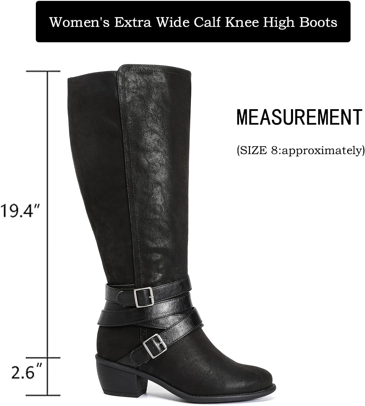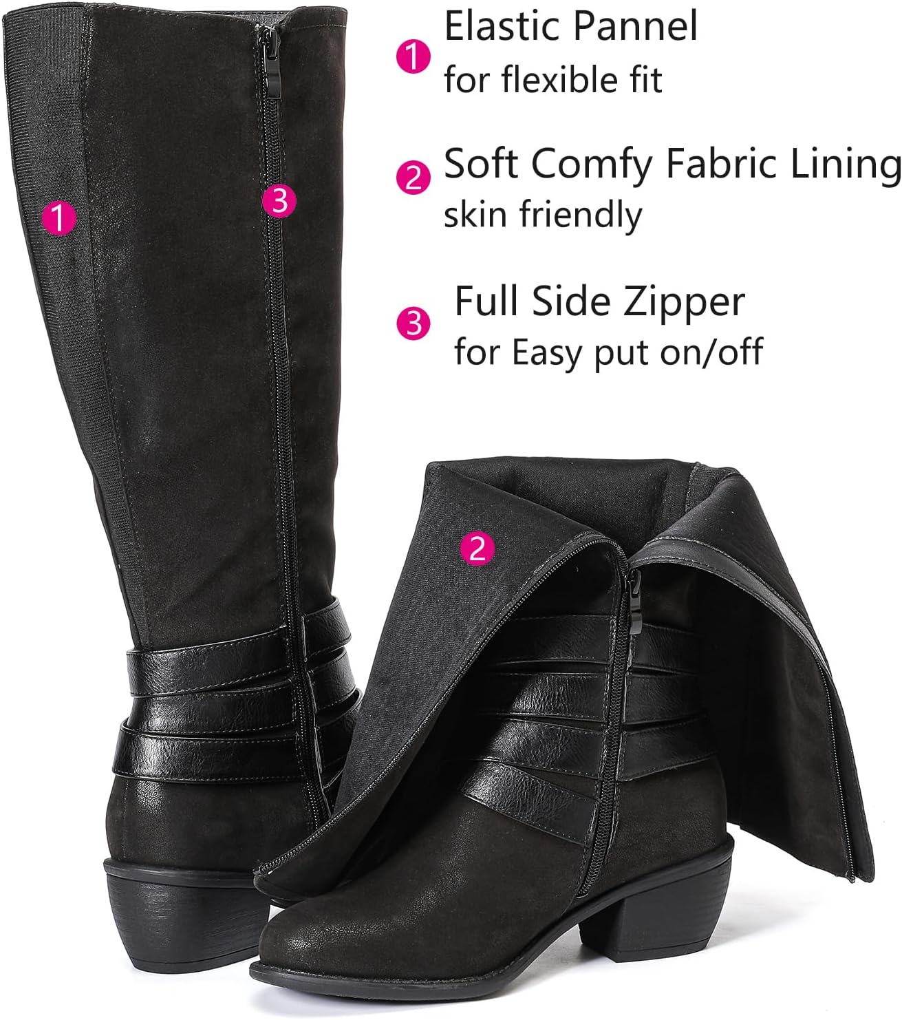 Luoika Women’s Extra Wide Calf Slouchy Knee High Boots, Wide Width Knee-High Boots Low Stacked Heel Side Zipper Winter Fall Tall Boots.