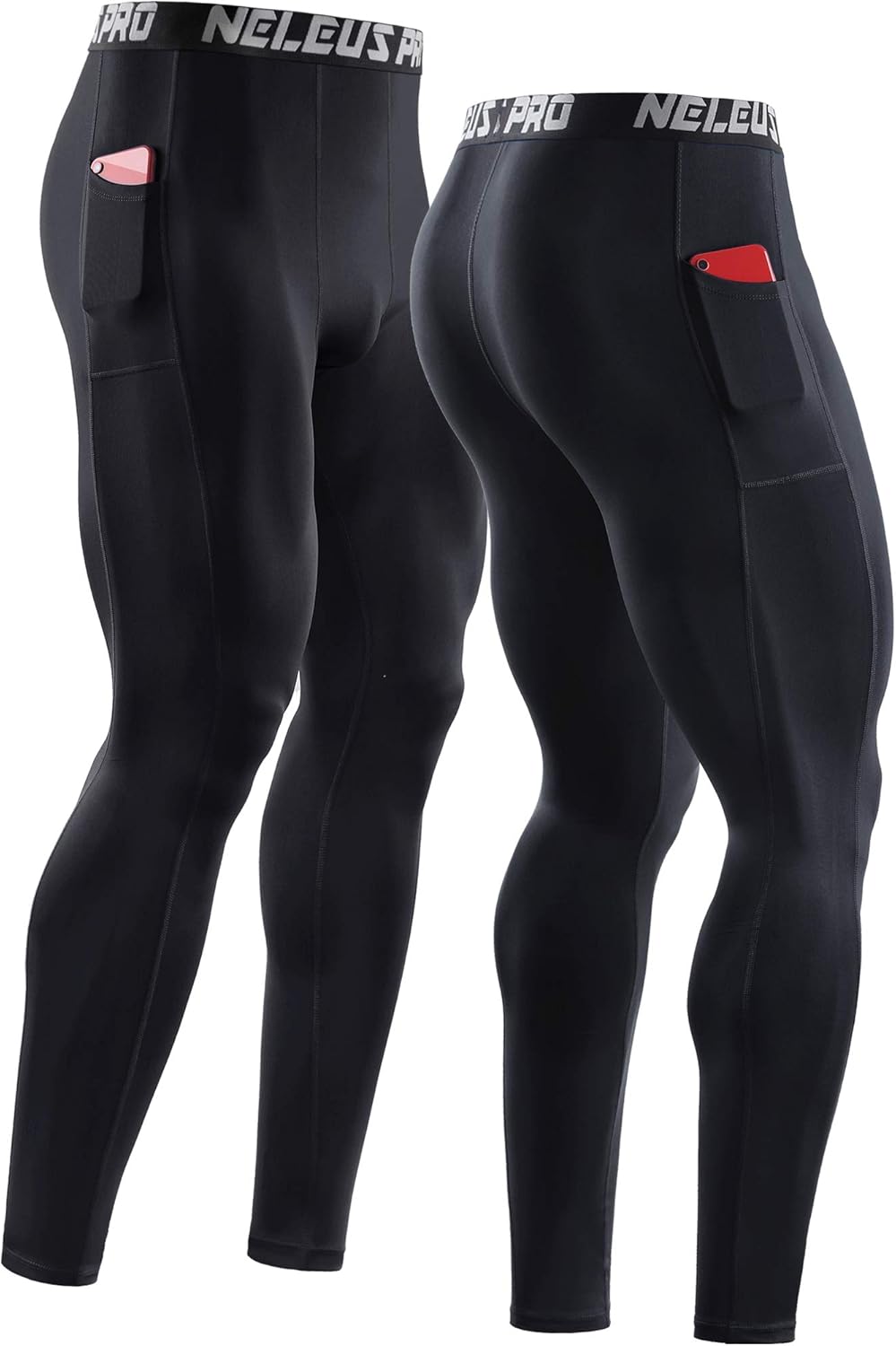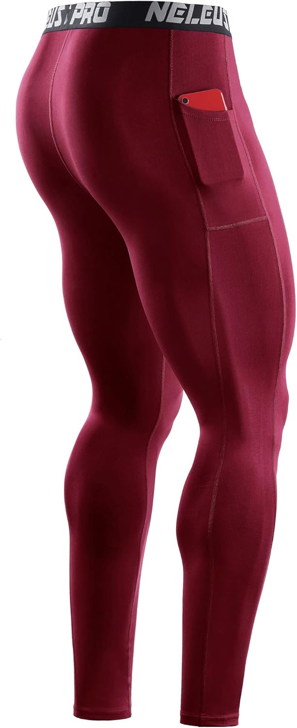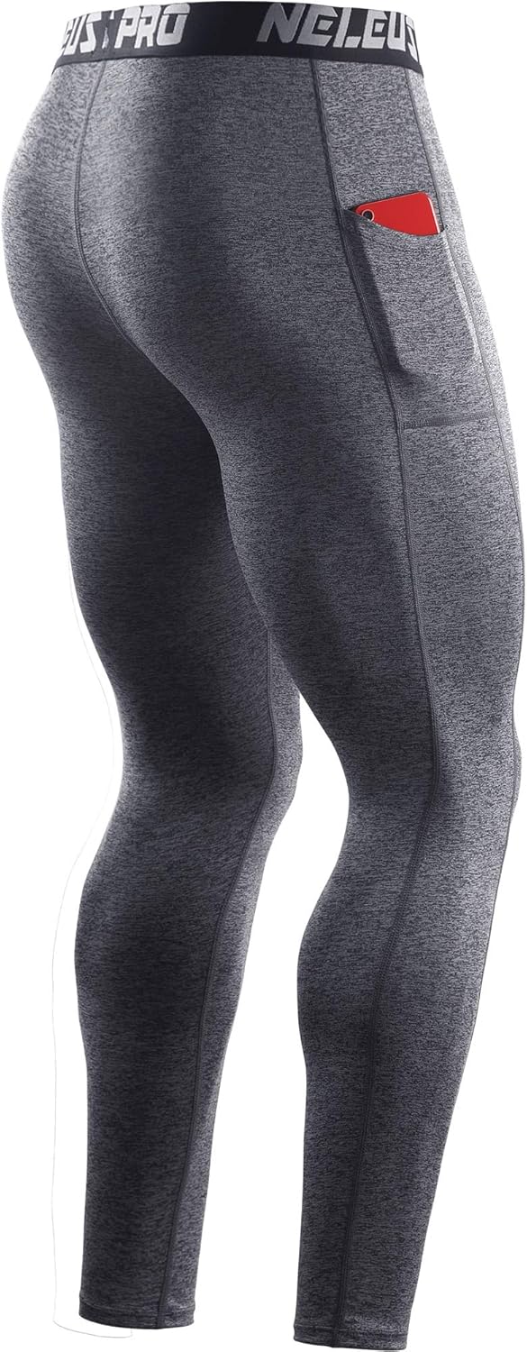 NELEUS Men’s Dry Fit Compression Baselayer Pants Running Tights Leggings with Phone Pocket