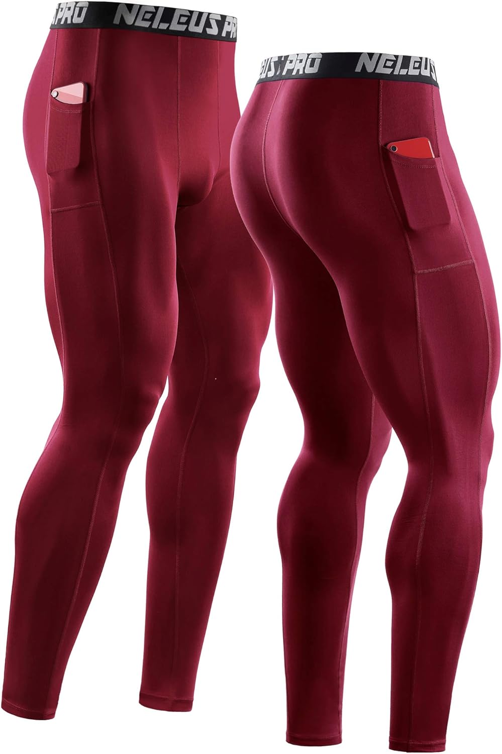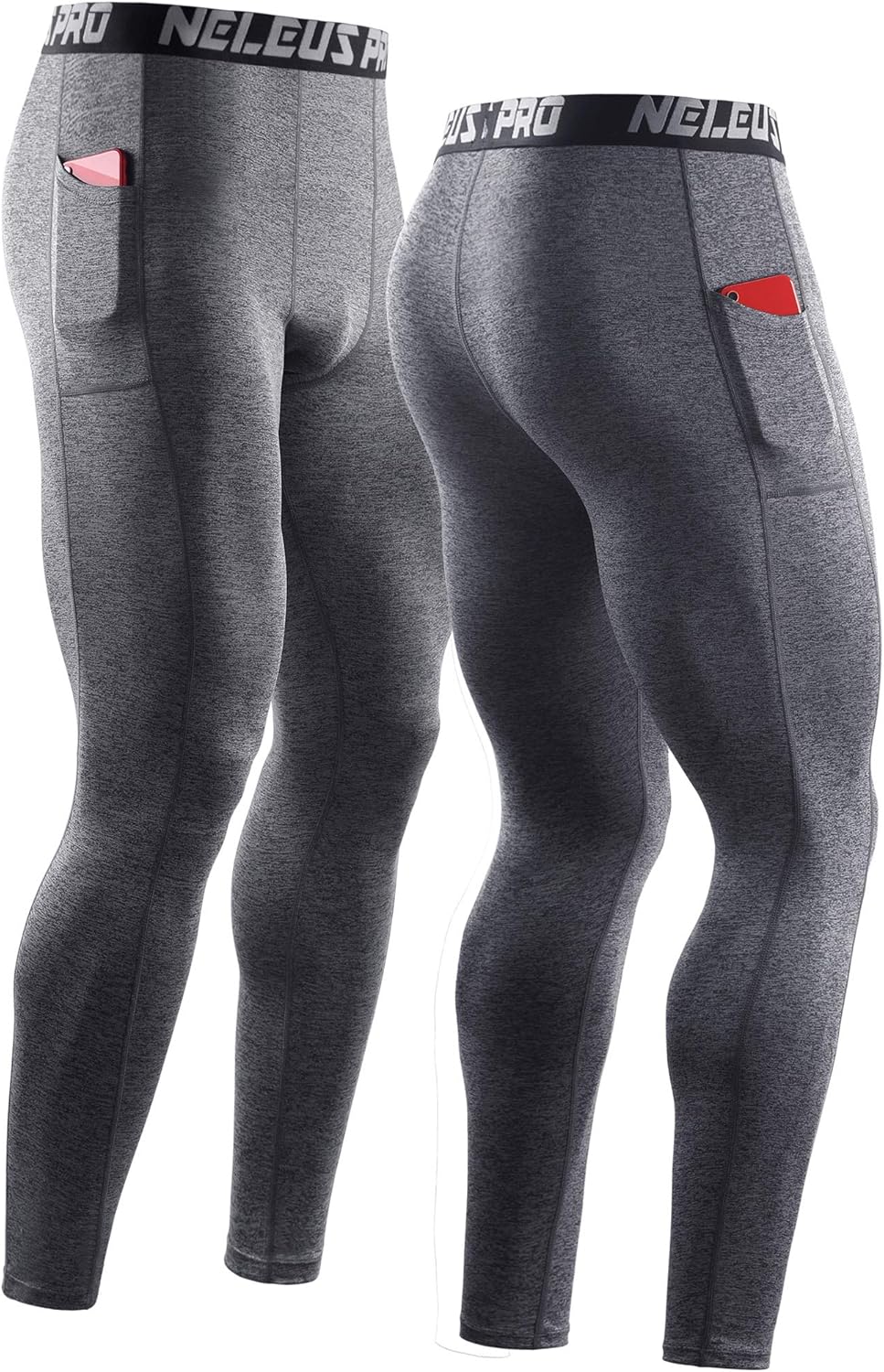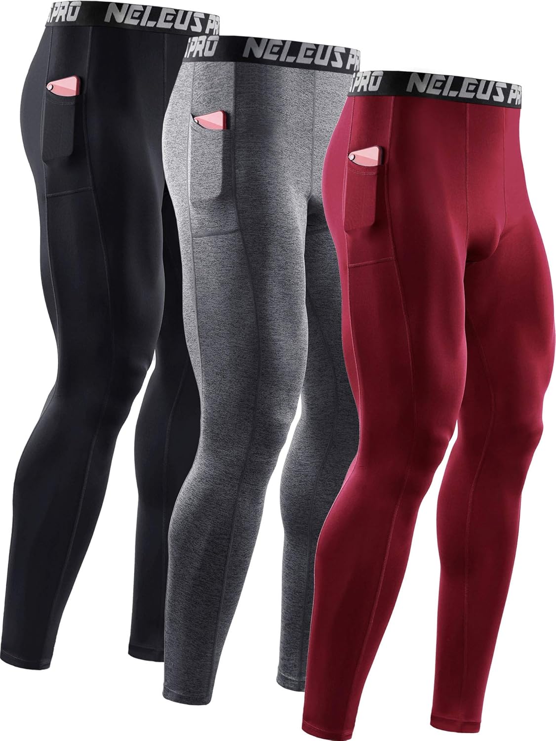 NELEUS Men’s Dry Fit Compression Baselayer Pants Running Tights Leggings with Phone Pocket