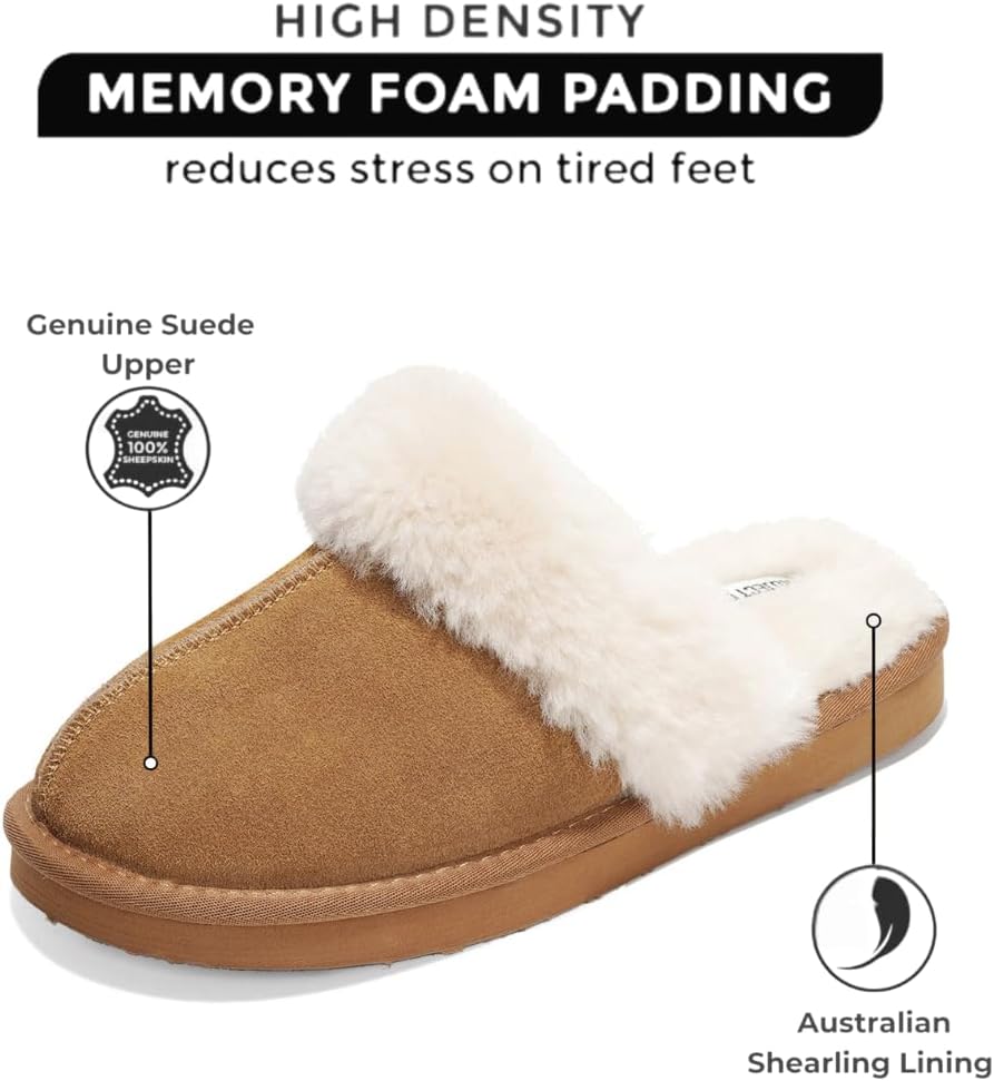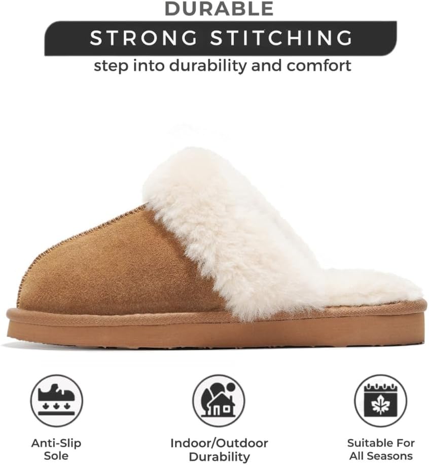 Project Cloud Shearling Slippers for Women Footwear – Genuine Suede Clogs Non-Slip Indoor/Outdoor Scuff Womens Slippers with Memory Foam Insole (Henka)